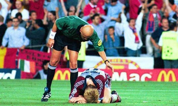 Играта трябваше да бъде подновена, но шокът за тях бе непреодолим. Сами Куфур удряше с юмрук по терена, по лицето на гиганта Карстен Янкер се стичаха сълзи, а Оливър Кан гледаше с празен поглед, който преминаваше през съотборници и опоненти.
