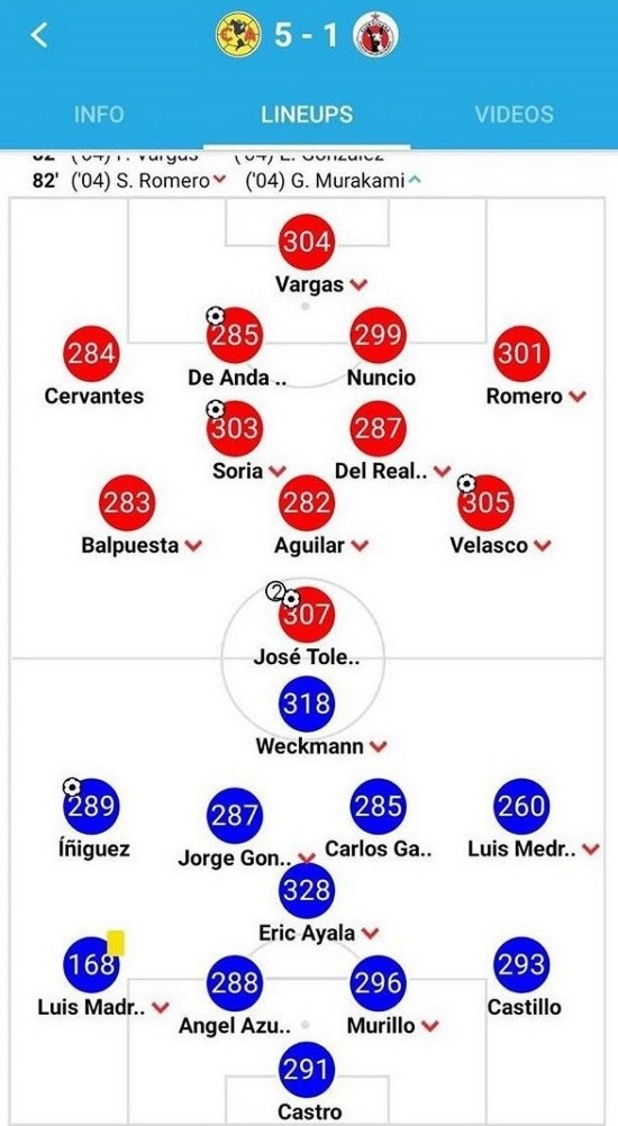 С 282 на гърба пък се подвизаваше защитникът на Америка и член на представителния тим на "сомбрерата" Едсон Алварес, преди да се премести в Аякс и да вземе скучната "четворка" в амстердамския гранд.