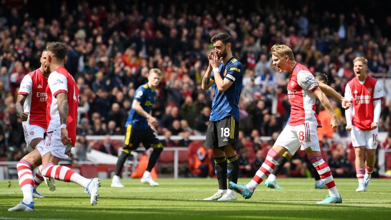 Така Арсенал има вече 60 точки на четвъртата позиция, с три повече от Тотнъм, който обаче е с мач по-малко. Юнайтед, който е с голова разлика от 1:7 от последните си два мача след разгрома с 0:4 от Ливърпул в предишния кръг, остава шести с 54 пункта с мач повече от Арсенал и с два повече от "шпорите".