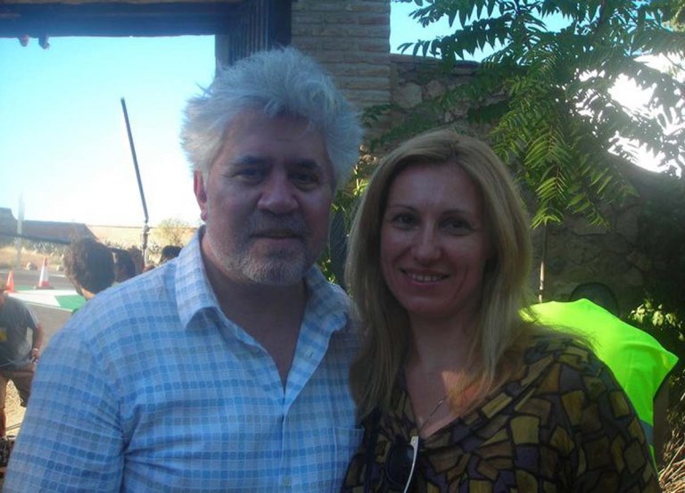 Педро Алмодовар измисли да си говорим - аз на български, а филипинците на техния тагалог с обяснение: "Ама вие толкова години работите заедно, вече си се разбирате". Понеже аз съм по-разговорлива и ми беше много забавно, двамата с него съставихме набързо репликите, аз ги обясних на филипинската двойка, които в действителност работеха в тази "финка" (ползвана и за крайградски хотел). Трябваше и да пресечем доста натоварен с движение път, пет дубъла бяха достатъчни, а взискателният режисьор - доста доволен. После го помолих за снимка, съгласи се, въпреки че по принцип не обичал, дори се шегуваше, сваляйки бяла сламена шапка "Чакай да се среша, да съм и аз красив", оформяйки нагоре гъстата си посребрена коса. С Роберто (с тигър костюма) пък си направихме много забавни снимки, беше страхотно! Побъбрих с Елена Айная и Мариса Паредес докато ни гримираха, но снимките ми не съвпаднаха с тези на Бандерас, нито на Бланка Суарес.