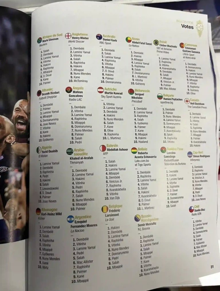 С изключение на Кварацхелия, всички останали играчи, за които е гласувал българският представител, намериха място в топ 10 на класирането на France Football и ФИФА. Палмър обаче остана едва 8-и, а Мендеш - 10-и.