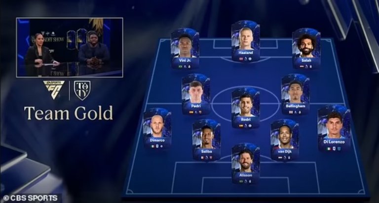 Противниците им - Майка Ричардс и Алекс Скот, успяха да вкарат Белингам в отбора си. Звездата на Реал си партнира с Педри и Родри в идеалния им тим, който в атаката разполага с Мохамед Салах, Винисиус Жуниор и Холанд.