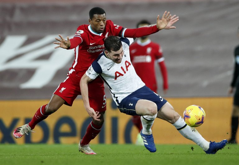 Една от най-ранните интригуващи тактически битки в мача излезе на дневен ред, когато Жозе Моуриньо прекрои халфовата си линия, натоварвайки Муса Сисоко с повече работа по крилото в подкрепа на Хари Кейн и Хьон-Мин Сон. Това на практика остави Ливърпул с предимство трима на двама в центъра и Пиер-Емил Хьойберг се залепи за Джорджиньо Вайналдум. Двамата играчи с номер 5 на няколко пъти влязоха в единоборства и датчанинът беше принуден да фаулира холандския си съперник.