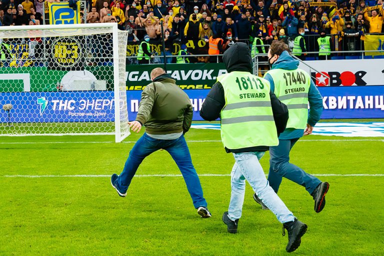 "На 35 години съм. Живея в Ростов на Дон и работя като заварчик - представя се Дмитрий. - От първи клас съм привърженик на ФК Ростов, но рядко ходех на мачове. Започнах да посещавам по-активно стадиона от 2014 г. Опитвам се да не пропускам домакинските мачове и често ходя и по гостувания. Срещу Динамо бях в агитката, но се преместих в един от централните сектори, от които нахлуването е по-лесно. Скочих от три метра и си счупих петата, но все пак успях да избягам на стюардите. Когато стигнах до отбора, охраната ме наобиколи, но футболистите се застъпиха за мен.