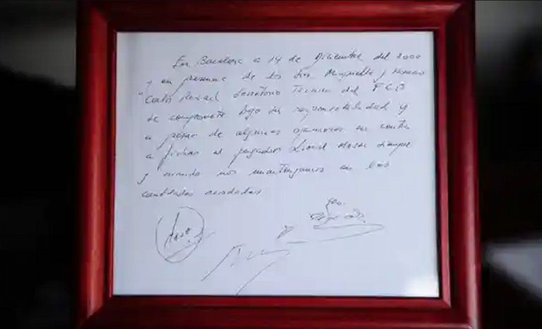 Първият истински договор между Меси и Барса е подписан през март 2001 г. По най-бързия начин клубът подновява лечението с инжекциите, първите от които тогавашният изпълнителен директор Жоан Лакуева плаща от личния си джоб - 152 хиляди песети.