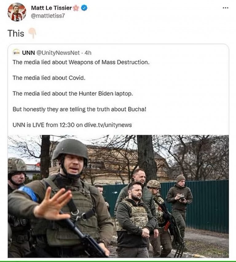 По-късно Льо Тисие изтри поста си, но срещу него се надигна вълна на недоволство на Острова. Той ретуитна публикация от акаунта Unity News Net, в която се твърди, че новините за зверствата в Украйна не отговарят на истината.
