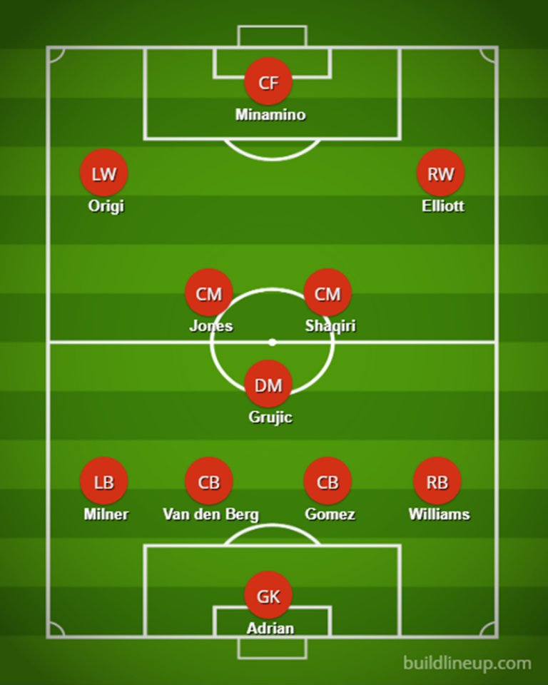 Очаква се на вратата да застане Адриад, а като титуляри да започнат още Неко Уилямс, Джо Гомес, Милнър, Ван ден Берг, Груич, Къртис Джоунс, Шакири, Ориги, Елиът и Минамино.