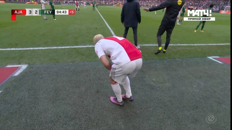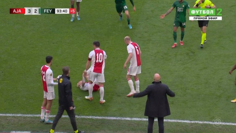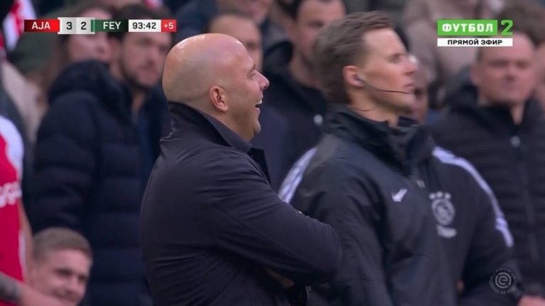 Докато играчите на Аякс се опитваха да покажат на съдията, че играта трябва да бъде спряна, за да бъде оказана лекарска помощ на Антъни, наставникът на Фейенорд Арне Слот се присмиваше на комедията, която се развиваше на около два-три метра от него.