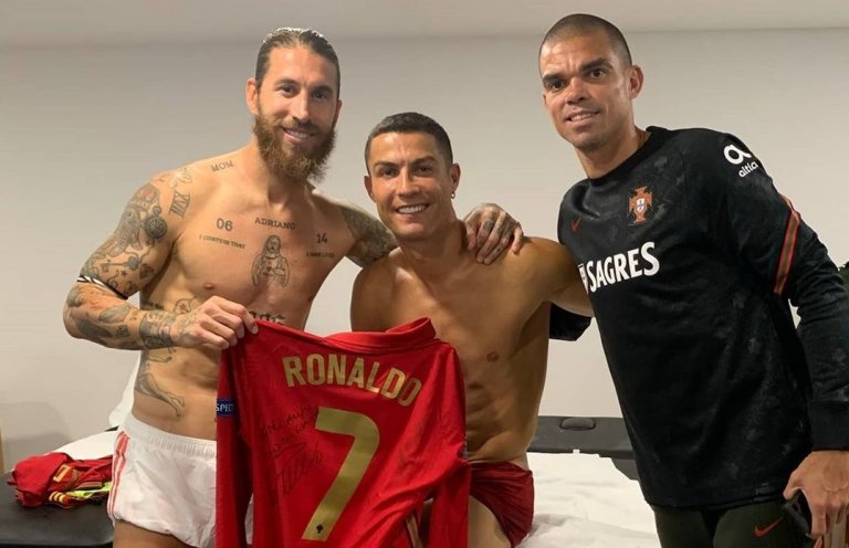 Рамос качи снимка в социалните мрежи, на която португалецът подарява фланелката си, като става ясно, че тя ще отиде за един от синовете на испанеца.