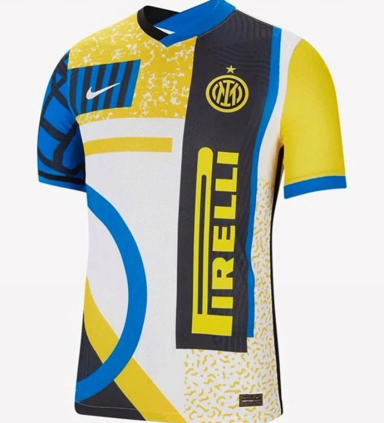 Четвъртата фланелка на Интер обаче е с четири: синьо, черно, бяло и жълто.