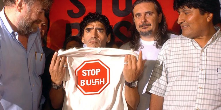 Няколко години преди тирадата в подкрепа на Чавес, Марадона протестира срещу Джордж Буш, когато американският президент дойде в Аржентина на посещение, след като беше преизбран за втори мандат. Диего поведе протестния марш и облече тениска "Stop Bush". Нищо чак толкова фрапиращо, бихте казали. Но вместо "s", беше изобразена свастика. Но не само това. Позволи си да нарече Буш "човешки боклук" и "убиец". "Предпочитам да бъда приятел с Фидел Кастро", отбеляза той очевидното.