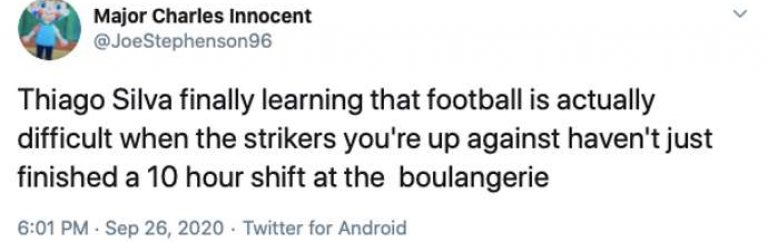 Друг пък коментира: "Тиаго Силва разбра, че футболът е труден, когато срещу него не са нападатели, които току-що са приключили 10-часова смяна в пекарната."