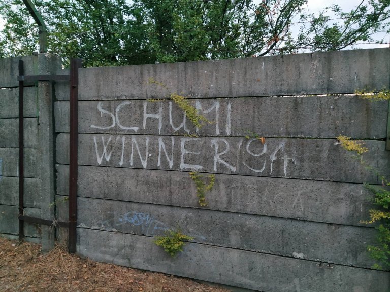 След приключването на събитията за деня решихме да използваме алтернативен маршрут и да заобиколим "Хунгароринг" около външната ѝ стена. Стена може би ви звучи прекалено, но е самата истина - сериозен зид, който трябва да предотврати опитите на всякакви навлеци, които евентуално биха се опитали да влязат без билети. За целта върху стената дори се "усмихва"... бодлива тел и неволно "Хунгароринг" прилича по-скоро на концлагер, отколкото на модерно спортно съоръжение. Отгоре на всичко в един момент достигнахме до портал, който зловещо приличаше на онзи, за който и сами се сещате, но без ужасяващия надпис на немски. Имаше обаче друг надпис: "Schumi winner 1994". Каква реликва, а?
