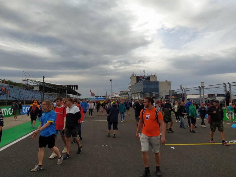 След края на състезанието част от множеството, изпълнило трибуните на "Хунгароринг", в това число и ние, имаше удоволствието да се разходи по старт-финалната права, да си направи задължителното селфи и да види по-отблизо боксовете на отборите или структурата на асфалта - не е толкова впечатляващ, колкото бихте могли да си представите (някои обичайни кръпки са си все там).