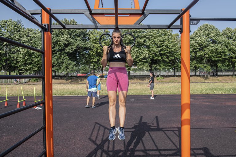 Всички в отбора са мъже - с добре изявена и поддържана мускулатура, упражняващи професиите на фитнес инструктори и културисти. Състезават се на лицеви опори - "едно от най-мъжките упражнения", както казва самата тя.