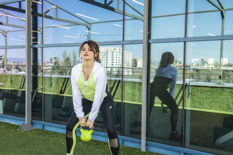 Именно така Дикова влиза в кампанията ни Get in Shape 4 - като фурия. Със смес от леко учудване и силно възхищение я наблюдавам как унищожава перфектната си прическа, като я хваща с един от онези ластици-пружини, и къса етикетите от екипа си със завиден замах.