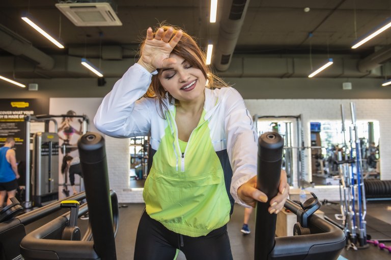 Около мен в залата на Next Level Fitness Club се носи онази характерна миризма на каучук, когато тя се задава към мен с делова крачка и с вид, който подсказва нетърпението ѝ да се впусне в нещо ново и предизвикателно.