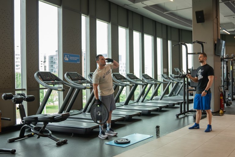 Виждам се с Алекс и Иво в Next Level Fitness Club в The Mall в дъждовна и леко намусена петъчна сутрин. В залата обаче настроението е коренно различно, звучи енергичен рок и участник и треньор в Get in Shape 5 са в прекрасно настроение.