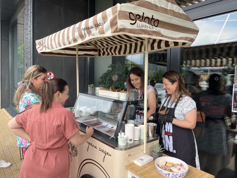 Сладък спомен от почти изминалото лято е една такава регулярна среща на целия екип, по време на която мениджмънтът, с широки усмивки, сервира на колегите си в горещините разхлаждащо джелато в офиса.