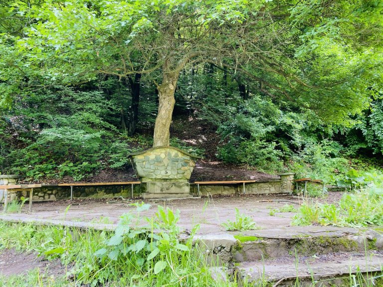 Ще разберете, че сте близо до крайната си цел, когато достигнете до чешма с няколко пейки. В нашия случай, въпреки скорошните дъждове, от нея не течеше животворна течност, а бяхме забравили и бутилки с вода преди пътуването...