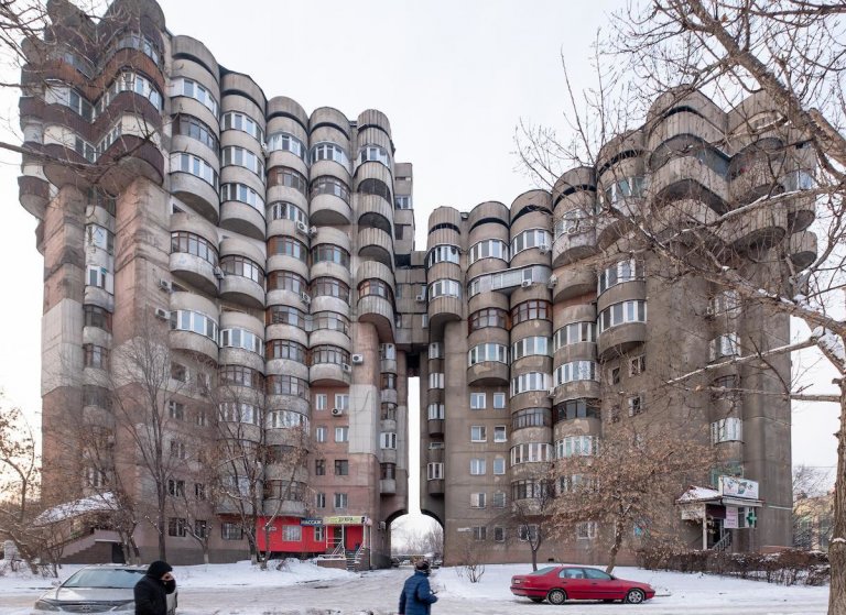 Облите балкони имат и съвсем практична насоченост - климатът в Алмати е суров и с тази архитектура в тях се задържа повече топлина и се пести от отопление. Освен това регионът е силно сеизмичен и се предполага, че тази конструкция ще издържи на силен магнитуд.