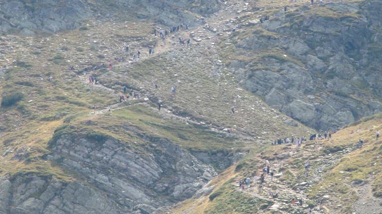 Сега това е невъзможно. Пътеките до езерата приличат повече на ВитошКа в първия топъл ден за годината в събота следобед, отколкото на планински маршрут. Хората се движат в индийска нишка с ритъма на тълпата и дори главната в Приморско засрамено навежда глава пред това, което се случва около Бъбрека.