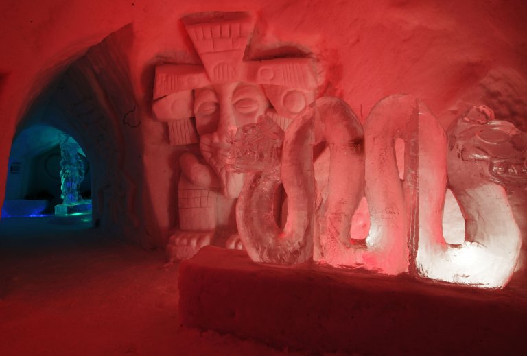 Той функционира само от януари до края на април, но за сметка на това се приема за един от най-впечатляващите ледени хотели заради скулптурите си. По стените на хотела, както и над леглата в стаите има изваяни цели сюжети - от легендарни създания от приказките до космонавти и балерини.