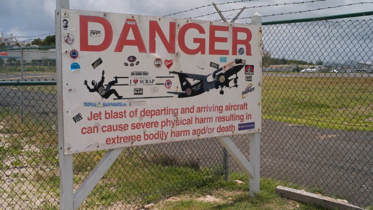 Началото на пистата е на около 50-тина метра от оградата, която дели плажа с летището. Струята от реактивните двигатели е толкова силна, че има случаи на вдигани във въздуха хора, да не говорим за плажни кърпи и шапки.