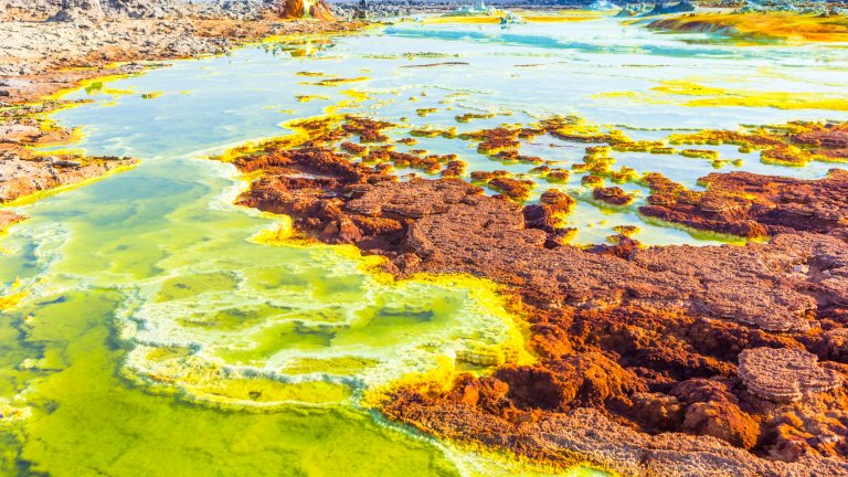Афарската депресия е пълна с бълбукащи от лава езера, многоцветни хидротермални полета и искрящи солници.