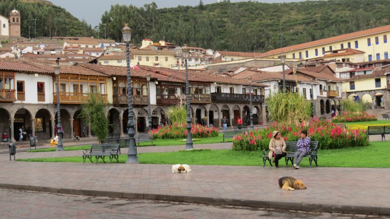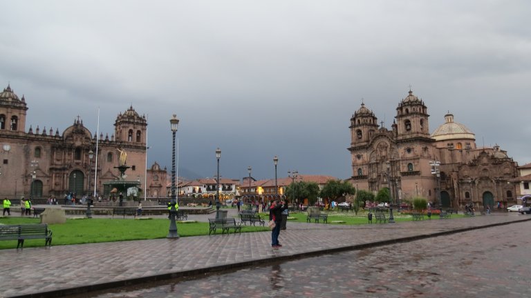 Шарени перуански баби, огромни катедрали, жени, които предлагат масаж само на мъжете, деца, които предлагат снимка или десерт с морско свинче, тежки облаци, които висят над площада като сиви птици Рух.