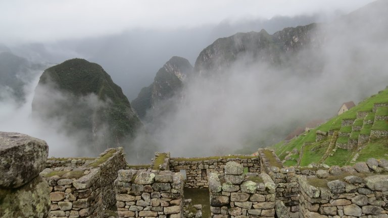 Времето на Мачу Пикчу тече малко странно - водачът ни казва, че са минали два часа и е време да слизаме, но всъщност са минали около десет минути. Уви, посетителите минават през преброителен пункт на влизане и на излизане, така че няма как да избягам, за да прекарам още малко време между мъглите и ламите на това място, владяно от призраците на древните инки и техните свещени животни (кондорът, пумата и змията).