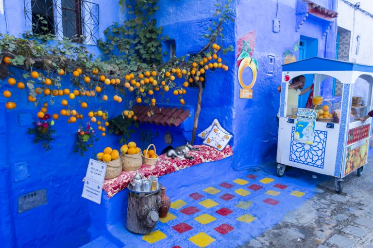 В ислямската култура пък синият цвят е олицетворение на положителни качества като спокойствие и уравновесеност. Затова и някои местни определят вида на мароканския град като успокояващ душата и носещ блаженство.