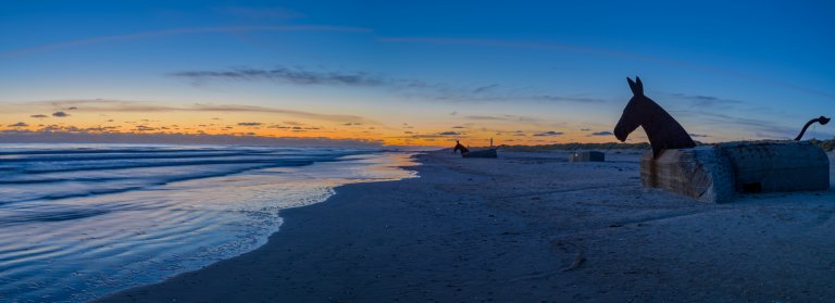 Необичайното стадо от мулета на плажа в Блован (Blåwand) всъщност са стоманени бункери, останали от Втората световна война, които от ужасяваща реликва от миналото са превърнати в уникално произведение на изкуството.