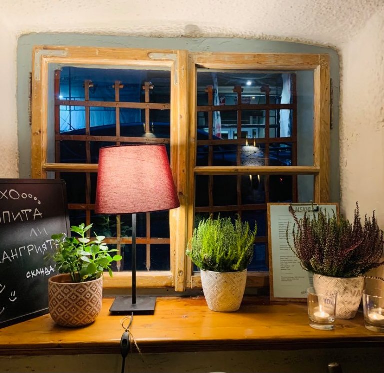 Всичко в интериора е различно - например лампите са правени от гилзи за снаряди, външните маси са изработени през 90-те години по поръчка, специално за бара. Там е и една от първите кафемашини за еспресо в София.