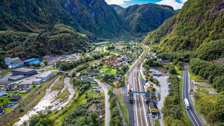 Следва спускането към живописния Вос, а последната част от пътя е доминирана от гледки от дълбоки долини, планини и тесни фиорди.