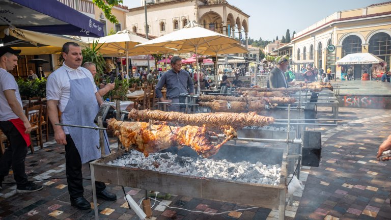 А след уединението и мистиката на Възкресение високо на скалите, в близкия град Каламбака пък можете да хапнете агнешко и да участвате в трапезната част на празника.