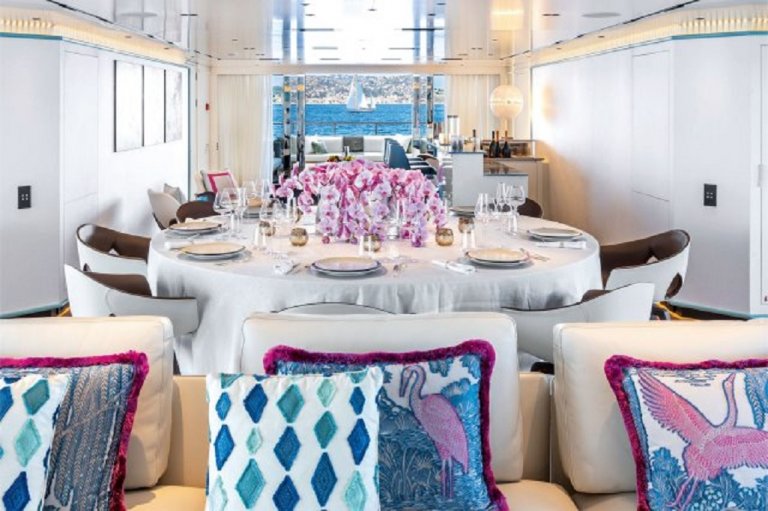 Rio е дълга 62 метра и интериорът ѝ наистина напомня на бразилския град - шарен, различен и весел. Навсякъде из яхтата стените са изрисувани с мотиви от джунглата, като същите цветове се повтарят и в мебелите.