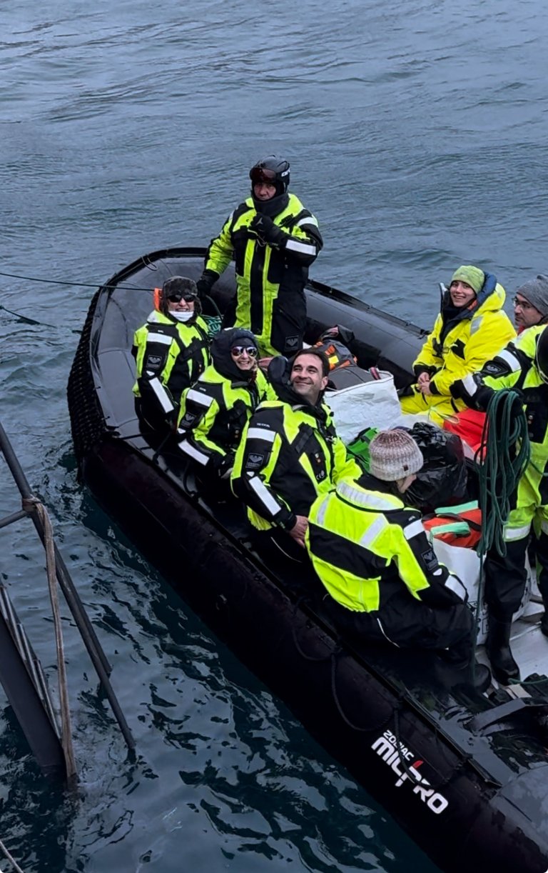На плажа ни чакаха няколко познати лица от екипажа на кораба и посрещането беше изключително мило и топло. Да те посрещат с вълнение "на края на света" е нещо наистина голямо. Всеки от нас получи инструктаж, че трябва да си пакетира ръчния багаж във водонепромокаеми торби и да облече специален костюм, абсолютно задължителен за всички, които влизат с лодка в ледения Южен океан.
