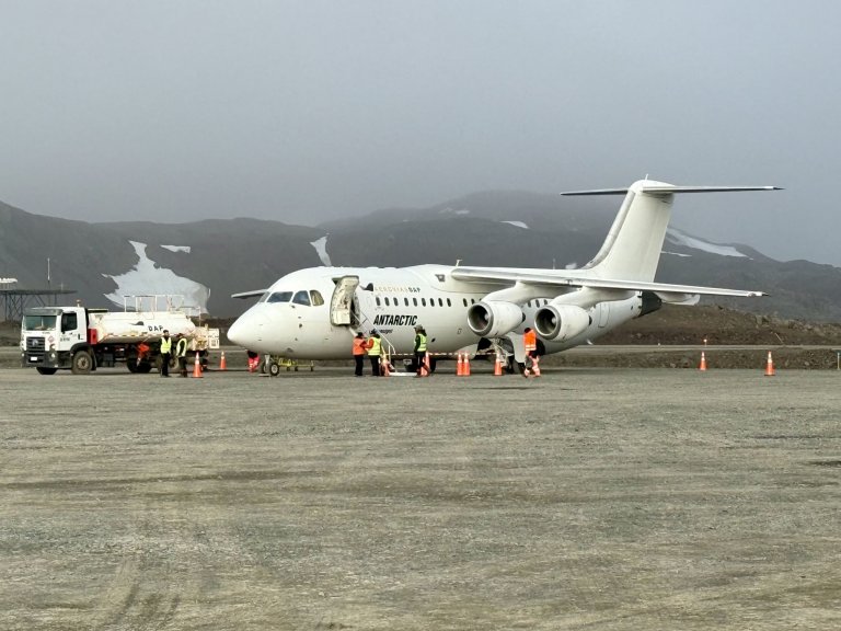 Когато пилотът обяви, че е време да затегнем колани за кацане, си отдъхнахме, защото полетите до Кинг Джордж са доста непредсказуеми. Поради рязката промяна във времето в Антарктика, често полетите биват отменяни в последния момент.
