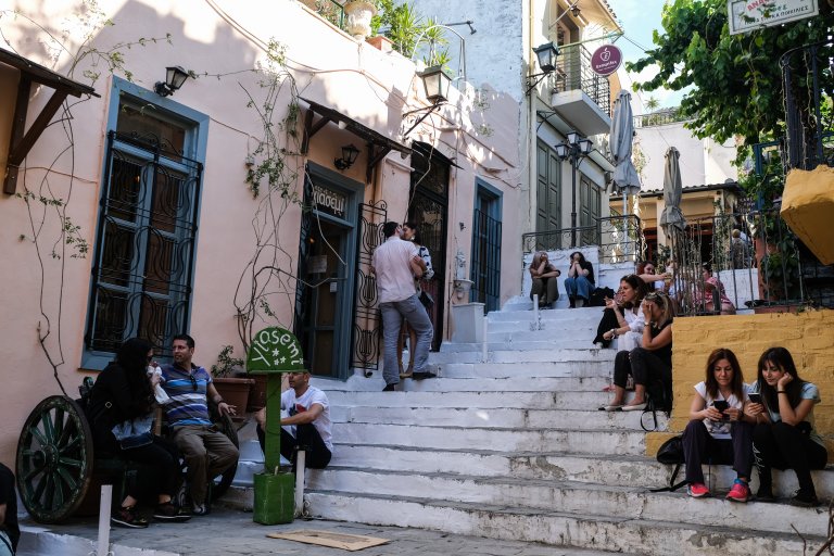 А ако не ви се слушат полуистини и полуизмислени истории, съчинени за новодошлите, може да последвате примера на истинските атиняни, що се отнася до пълноценната почивка. Да седнете на стълбите пред някое кафе, да пиете нещо студено и да разговаряте с приятели.
