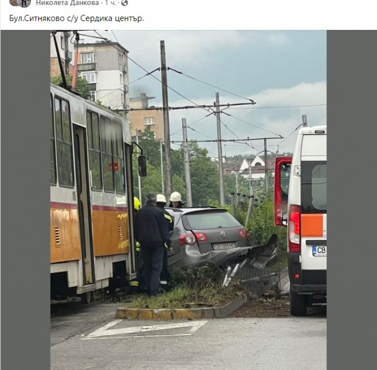 Трамвай блъсна лек автомобил на столичния бул. "Ситняково".