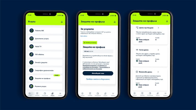 Наскоро Yettel представи нова услуга, наречена "Защита на профила", която извършва денонощен мониторинг и ни уведомява своевременно, ако имейлът ни попадне в следените подозрителни бази данни. С един абонамент могат да бъдат следени до пет имейл адреса, а известяването за пробив става посредством SMS или имейл съобщение.