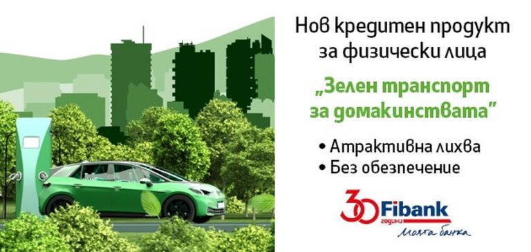 Fibank (Първа инвестиционна банка) предлага финансиране на клиенти, които желаят да закупят електрически автомобил, със своя нов продукт - потребителски кредит "Зелен транспорт за домакинства". Предлаганите от банката лихвени условия са сред най-атрактивните на българския банков пазар, като не се изисква самоучастие за покупката или допълнителни обезпечения, а срокът е до 10 години.