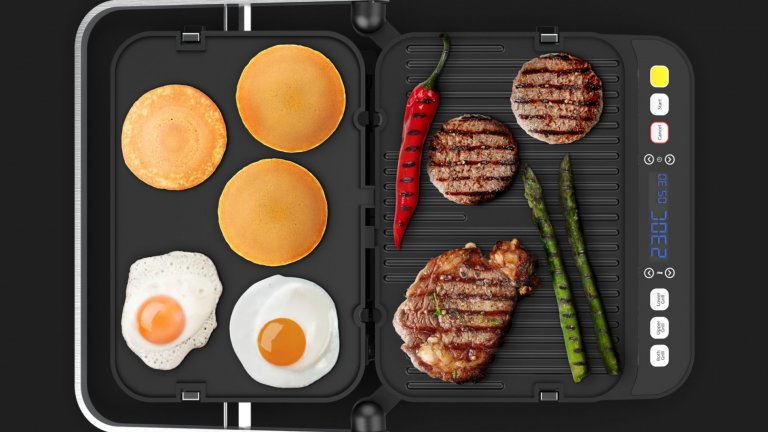 На плоската страна на плочите пък стават идеални палачинки, яйца, омлети, хрупкав бекон, картофки. Функцията за горно и долно печене веднага ни подсеща за съвършените бургери, изискани клуб-сандвичи, ароматни скариди и други морски изкушения.