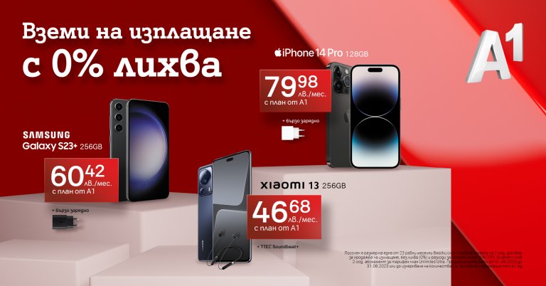 Затова А1 предлагат на клиентите си специална лятна промоционална кампания през целия август - устройства на изплащане с 0% оскъпяване. Потребителите могат да избират от устройства на топ марки, а в селекцията са включени както смартфони, така и смарт часовници.