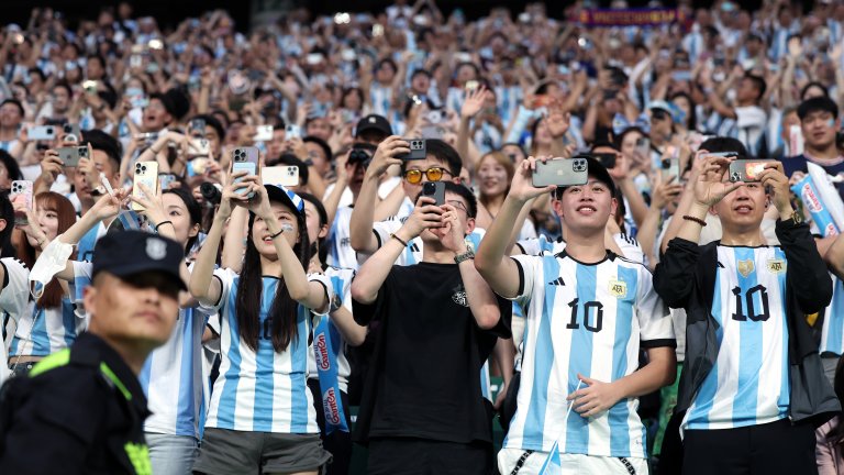 Повтарят някоя красива ситуация от мача, например гол със задна ножица, на забавен каданс и зад вратата се опулили десетки привърженици, чиито лица не се виждат. Само телефони. Голяма работа, ако не заснемеш нещо и не го пуснеш в социалките, значи! Ама как иначе ще се похвалиш, че си бил на мача...