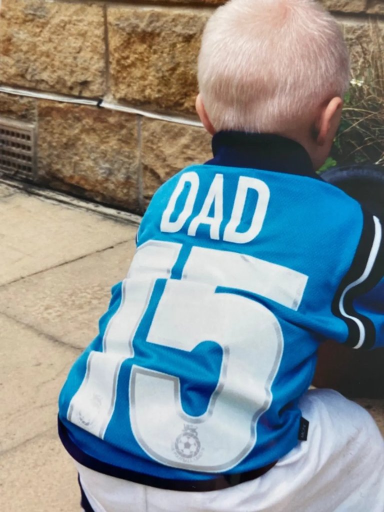 Ерлинг Хааланд започна флирта си с феновете на Манчестър Сити, публикувайки снимки, които разтопиха запалянковците. На тях звездата е съвсем малък и носи екип на "гражданите" с надпис "Татко" на гърба.