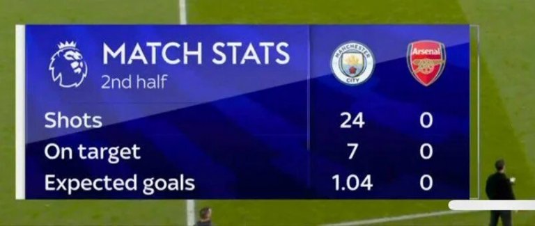 През втората част головете положения бяха 24-0 в полза на Сити, точните удари - 7-0, а очакваните голове - 1,04-0.