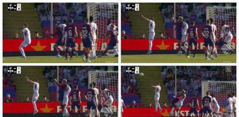 В 67-ата минута дойде и най-спорното отсъждане в срещата, което бе предизвикано от Винисиус Жуниор , който беше точен за 2:2, но впоследствие видя как съдията Маесо отменя голът заради игра с ръка на бразилеца. И в този случай обаче ВАР излезе на сцената, като след консултация със системата, съдията Франсиско Ернандес промени решението си и все пак призна попадението на мадридчани за редовно, въпреки че повторенията на ситуацията оставиха сериозни въпросителни дали Винисиус в действителност не играе с ръка.