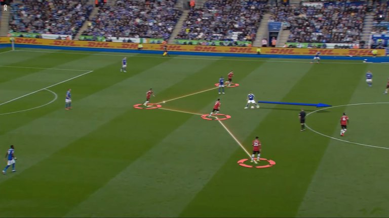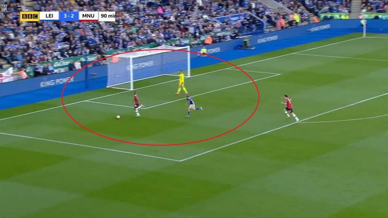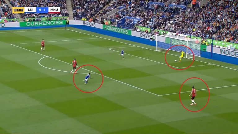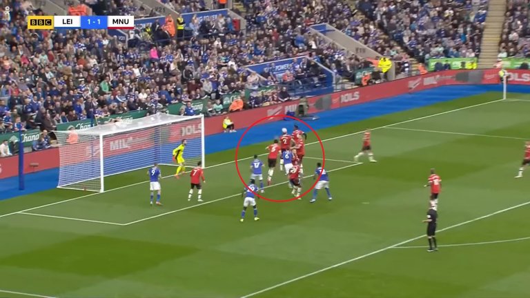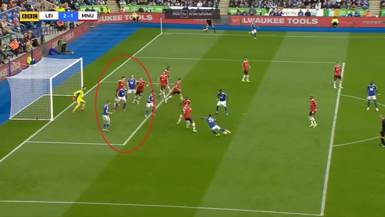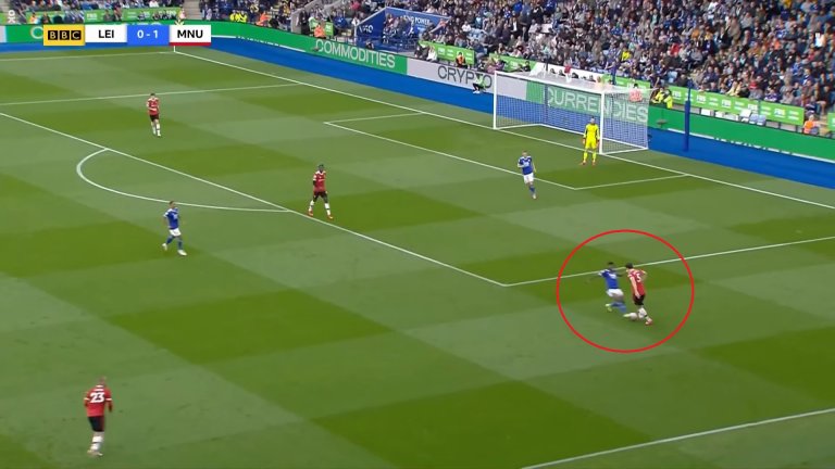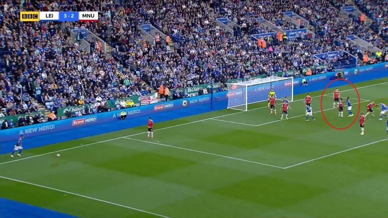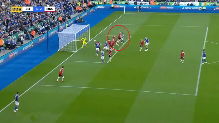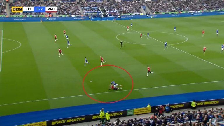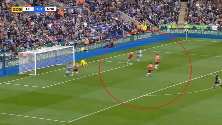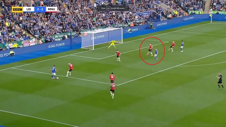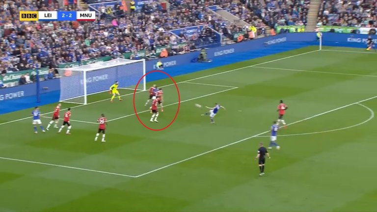 Защитникът на Лестър обаче щеше да бъде в положение на засада, ако не бе Магуайър. Английският бранител не се изтегли навреме и така покри цели трима играчи на Лестър, единият от които Суюнджу.